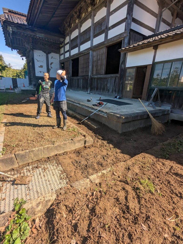 また總持寺祖院様よりの情報で、震災後より大祖堂横の側溝に泥が滞留しやすくなっておりました。土砂が溜まっていたため、要請をいただき10月10日に曹洞宗静岡県第一宗務所青年会、全曹青の勝田災害復興支援部アドバイザーが土砂撤去作業を行いました。