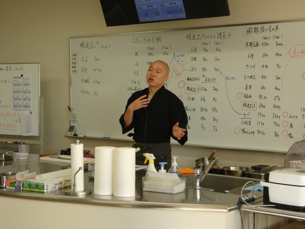 食事の途中には、講師を務めた磯江教化委員長から、皮や切れ端も大切にする食材との向き合い方についてのお話しがありました。